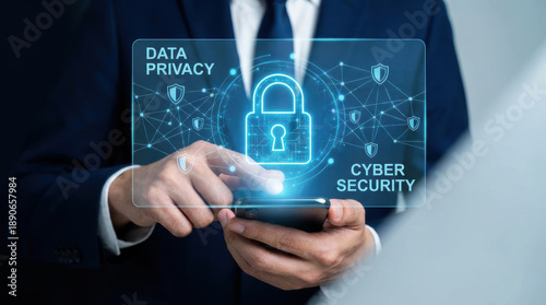 Cyber security data privacy network encryption lock shield firewall protection safe attack Digital networking icons show optimization for project innovation with strong online privacy protection