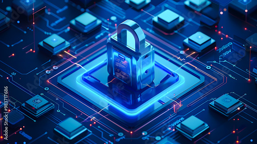 Cyber security, data protection, cyberattacks concept on blue background. Database security software development. Online security concept