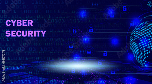 Cyber security digital technology background with data protection locks for website banner design
