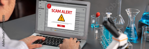 Cyber security software show alert of cyber attack for protection brisk. Danger from virus, phishing and cyber fraud.
