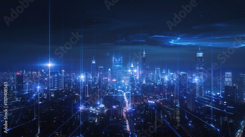 Cyberpunk Cityscape - Digital Network