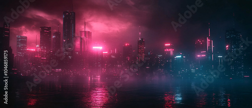 Cyberpunk Cityscape with Pink and Blue Neon Lights