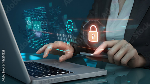Cybersecurity and Data Protection , GDPR compliance visual, digital security padlock, online data protection, cyber safety network, protecting personal information.