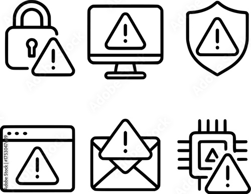 Cybersecurity System Warning Alert Vector Icons