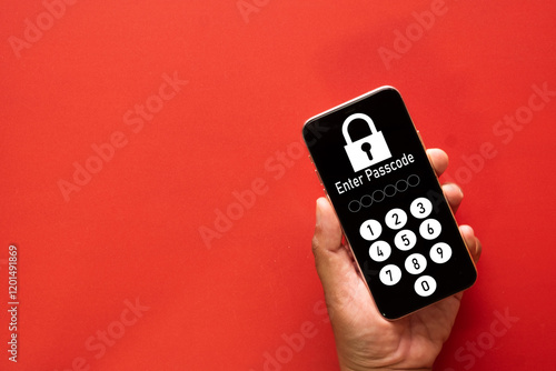 Cybersecurity,Data protection,Online security concept.,Smartphone with password login screen or passcode lock screen for security and privacy protection idea.