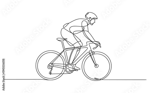 Cyclist Riding Bicycle Single Line Drawing Sports Concept