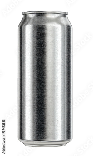 Cylindrical, silver beverage container, isolated on black background, showcasing metallic texture