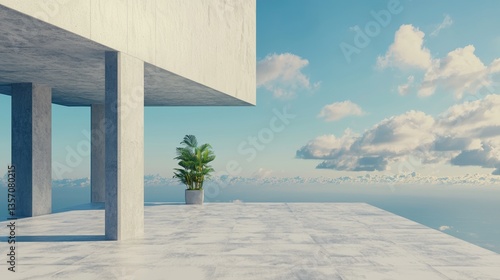 D rendered abstract modern architecture with white concrete and empty cement floors, showcasing a minimal exterior suitable for car presentation