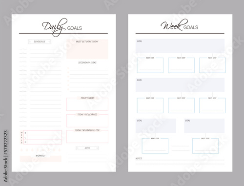 Daily weekly goals planner. Minimalist planner template set. Vector illustration.