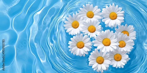 Daisies Floating on Calm Blue Water for a Peaceful and Relaxing Scene