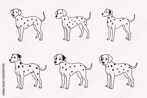 Dalmatian Dog outline vector illustration isolated on white background.
