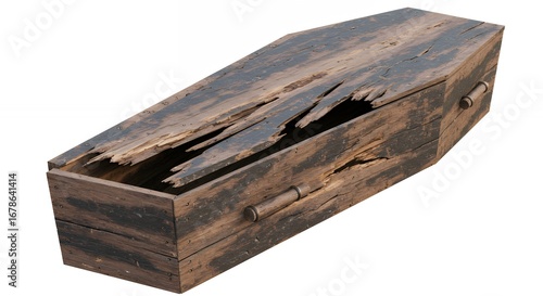 Damaged old wooden coffin
