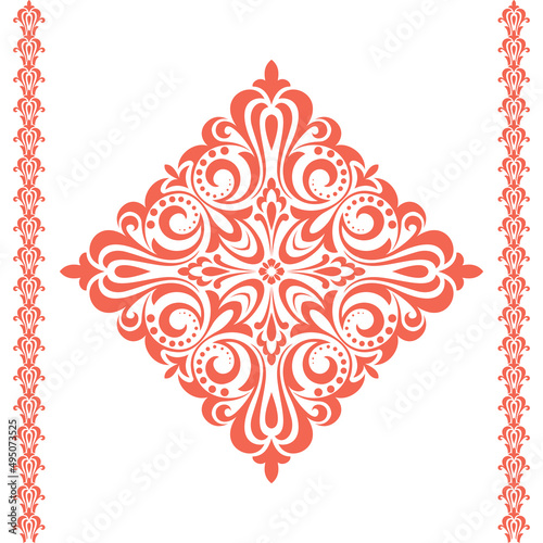 Damask graphic ornament. Floral design element. Pink vector pattern