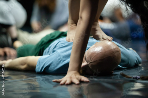 dancer recieve bodywork jr massage laying on the floor