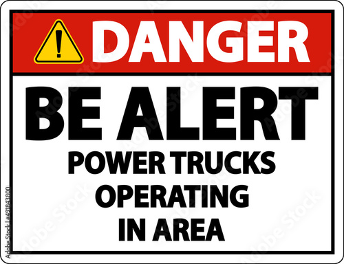 Danger Power Trucks Operating Sign On White Background