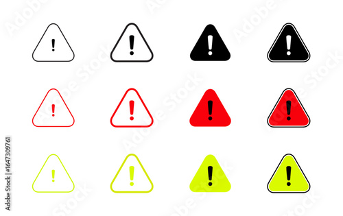 Danger triangle vector icon set. Warning sign icon set. caution, warning icon, exclamation marks, attention, error on isolated transparent background vector illustration