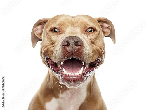 dangerous pit bull dog portrait showing fangs on white background isolated PNG