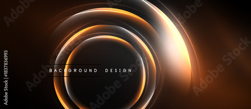 Dark background features concentric orange glowing circles. Minimalist design with text background design centered within rings. Modern aesthetic.