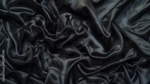 Dark black silk satin surface background elegant and textured with folds and creases Flat lay template with empty space for design