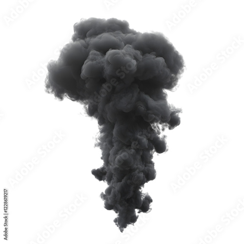Dark Black Smoke Cloud with Dramatic Swirling Effect, Isolated on Transparent Background