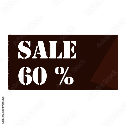 Dark Brown Sale 60 Percent Off Tag with Stencil Font - Discount Coupon Label Illustration