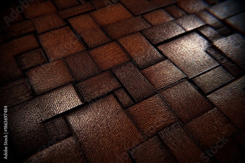Dark brown, woven wooden texture, close up, with vignetting
