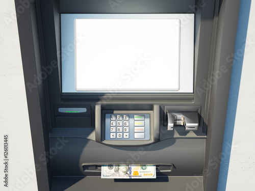 Dark cash machine on a bright wall. 3d rendering