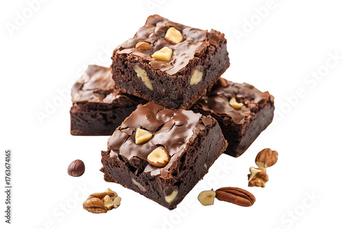 Dark Chocolate Brownies with Nuts Scattered Isolated on White Background. Rich Chocolate Brownies with Walnuts PNG.