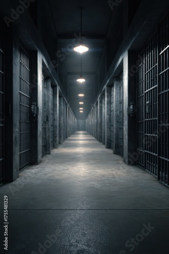 Dark corridors of an abandoned prison evoke mystery and suspense in eerie silence