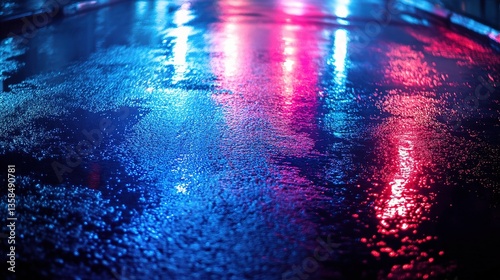 Dark Cyberpunk Street with Wet Asphalt and Neon Reflections at Night
