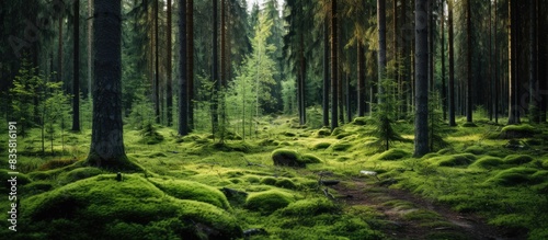 Dark forest scenery with copy space image available.
