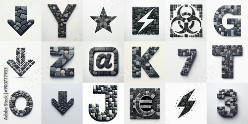 Dark gray and red stones Tiling Lettering Typeface. AI generated illustration