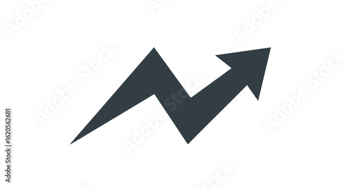 Dark gray zigzag arrow pointing upwards on a white background in a simple directional illustration