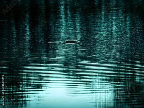 Dark Green Ripples Expand Outward from a Hole in Calm Water with a Light Below