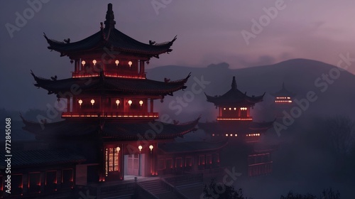 Dark landscape, architecture - Chinese temple.