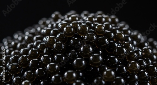 Dark lustrous caviar gleams subtly under low lighting. AI Generated