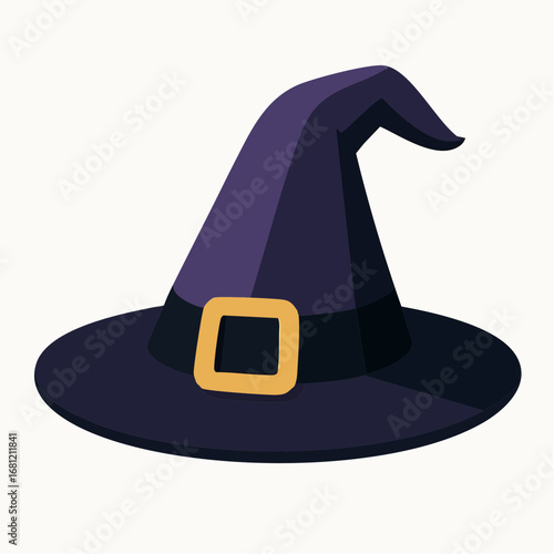 Dark purple witch hat with a gold buckle and a wide brim, perfect for Halloween costumes and magical themes