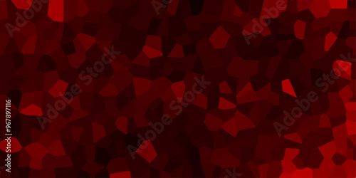 Dark red and black Broken Stained Glass Background with black lines. Voronoi diagram background. Seamless pattern with 3d shapes vector Vintage Illustration background. Geometric Retro tiles pattern