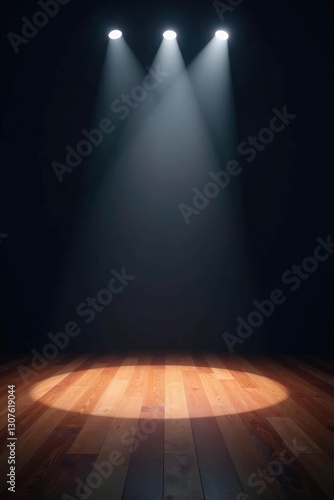 Dark stage with bright spotlight on empty floor, stage, floor