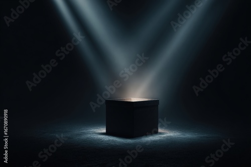 Dark stage with illuminated cube