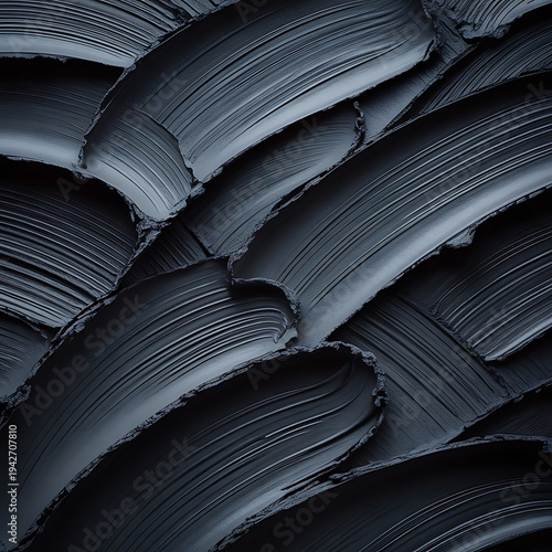 Dark textured plaster wall with curved relief pattern in black and white monochrome