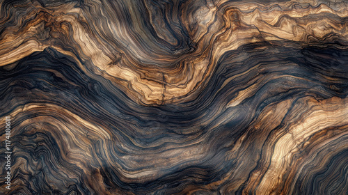 Dark Walnut Wood Grain with Deep Flowing Lines in Abstract Pattern