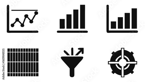Data analysis graph chart diagram filter target information funnel business analytics dashboard statistics report 100 on transparent background silhouette