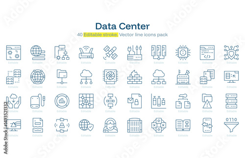 Data Center line icon pack. Data Center Stroke icon set. Editable Stroke icon.
