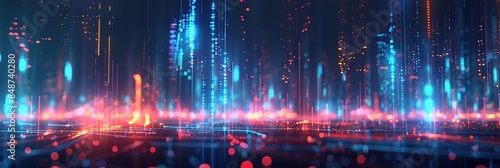 Data Charts Theme with Blue Tones, Technological Sense, Lines, Particles, Ambient Light, and Mysterious Atmosphere
