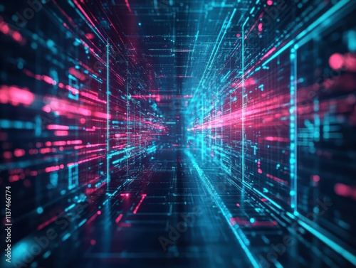 Data packets traveling along illuminated pathways in a dark cloud computing network, scifi atmosphere, sharp focus