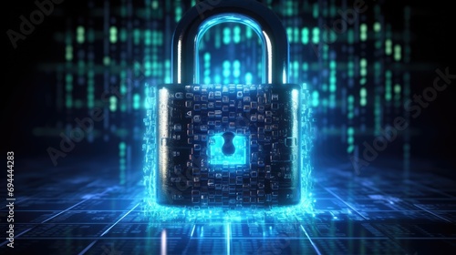Data protection cyber security privacy background, Cyber binary code lock, Lock on binary code, Cyber security and data protection concept.