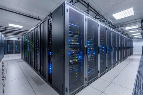 Datacenter, modern it technology server room.