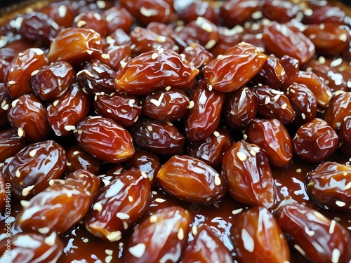 dates close up. date palm background. Date palm on a traditional craftsman market.Horizontal image.