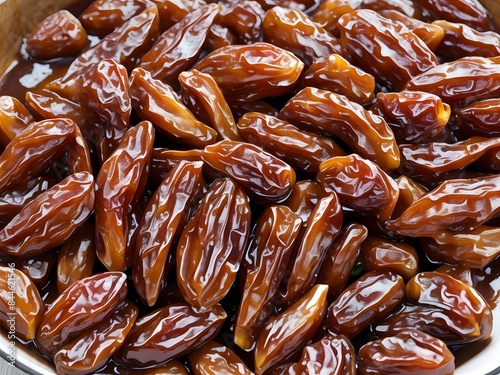 dates close up. date palm background. Date palm on a traditional craftsman market.Horizontal image.